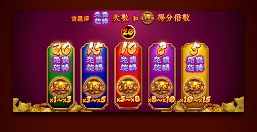 免費旋轉功能是《恭喜發財》中最受玩家期待的機制,這項功能提供了額外的遊戲機會,並有機會贏得高額獎金。當玩家達成特定條件後,免費旋轉功能將自動啟動,進入專屬的選擇頁面。