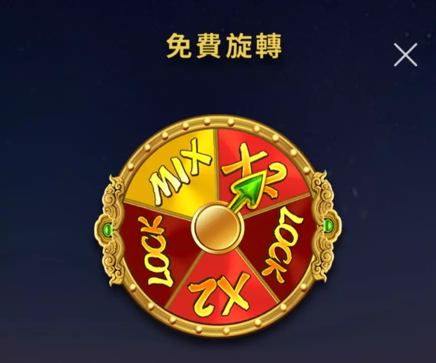 在進入免費旋轉環節之前,遊戲將先進入一個獨特的轉盤遊戲。轉盤上的格子包含三種特殊功能金色百搭符號、X2(倍數特色)和MIX。玩家點擊轉盤後,射中的功能將應用於接下來的免費旋轉遊戲,為免費旋轉增添更多的趣味性與期待感。