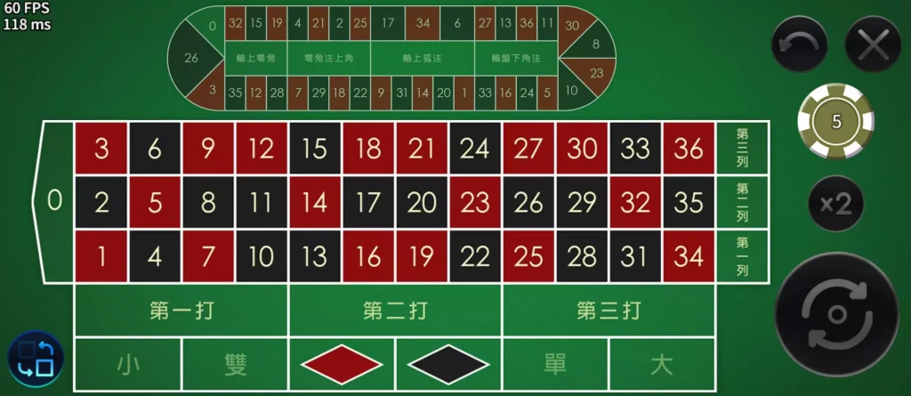 玩家可以直接點擊這些大區域進行下注,系統會自動將籌碼分配到相應的直注位置。此外,玩家還可以進行「旁注」,選擇自己喜歡的號碼並下注於其左右相鄰的號碼。