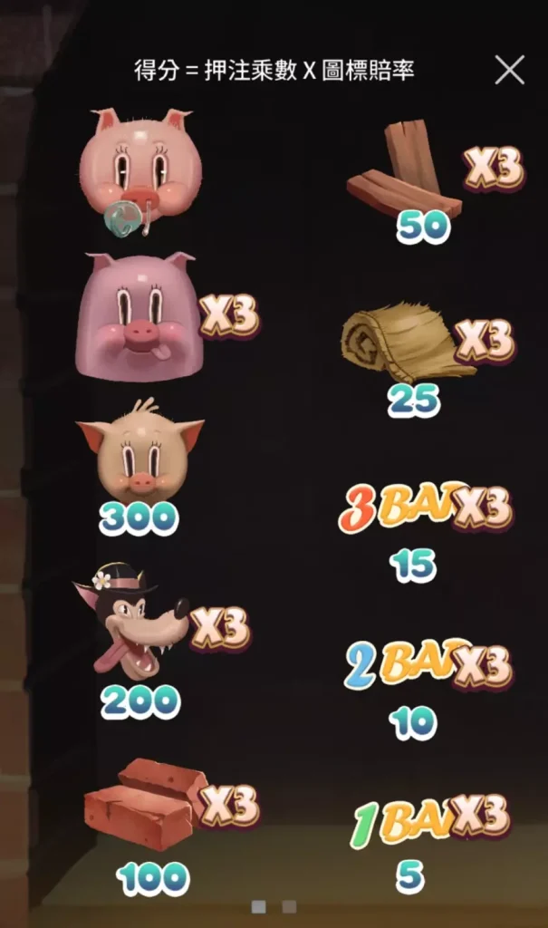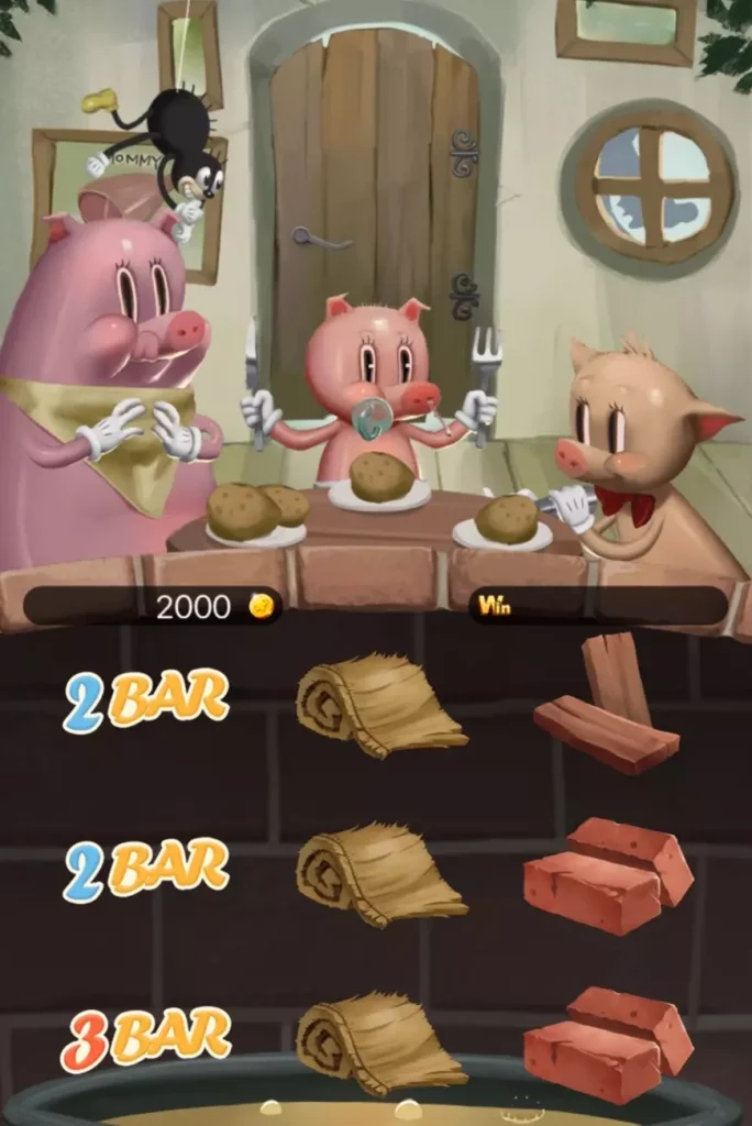 三隻小豬遊戲的設計將經典童話的元素融入其中,每個圖標都採用與三隻小豬相關的角色與物品,包括稻草屋、木屋、磚屋以及豬兄弟們,讓玩家在遊戲過程中感受到濃厚的童話氛圍。