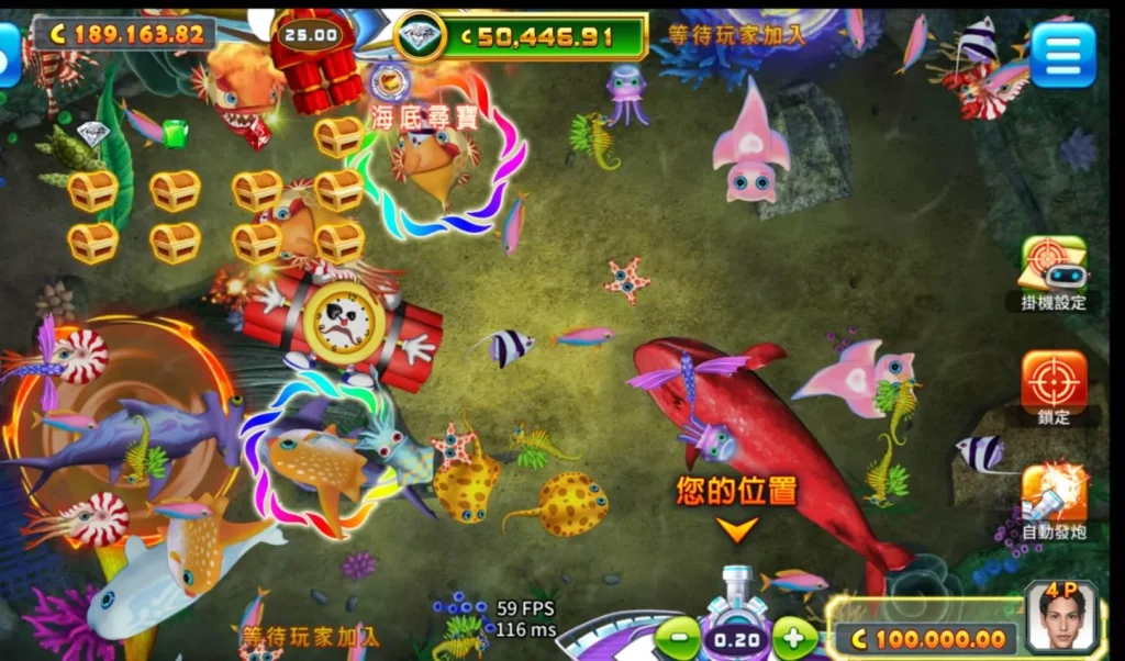 玩家可以通過精準點擊畫面觸發「章魚爆彈」,或是引爆「轟天雷」,瞬間將所有一般魚種消滅,從而獲得巨額獎金。這些功能在緊要關頭不僅能幫助玩家逆轉局勢,還能提升遊戲的刺激程度。