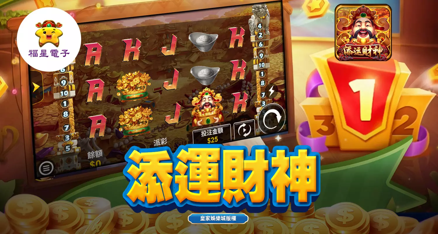 福星電子《添運財神》是一款充滿東方傳統吉祥寓意的3×5滾軸老虎機,擁有20條賠付線,以經典財神主題為核心,為玩家帶來祈福增運的遊戲體驗。遊戲設計精美,玩法創新,特別是其百搭符號與連續旋轉機制,讓玩家在追逐獎金的過程中感受到無限的樂趣與期待。