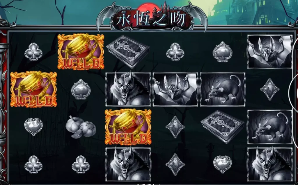 遊戲背景採用歐式古堡設計,搭配神秘而動人的旋律,當玩家獲勝時,還會有華麗的光影特效,增強整體的視覺與聽覺體驗。這些獨特的獎勵機制與視覺效果,使《永恆之吻》不僅是一款老虎機,更是一場奇幻浪漫的冒險旅程,讓玩家能夠沉浸在神秘的吸血鬼世界中,享受極致的遊戲樂趣。