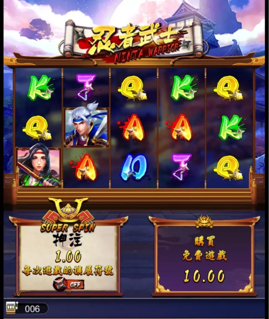 《忍者武士》是一款以幕府時代為背景的電子遊戲,結合了簡單易懂的遊戲機制與豐富的獎勵功能,讓玩家能夠輕鬆上手,同時享受刺激的戰鬥氛圍。只需設定投注金額並點選旋轉按鈕,即可展開冒險。