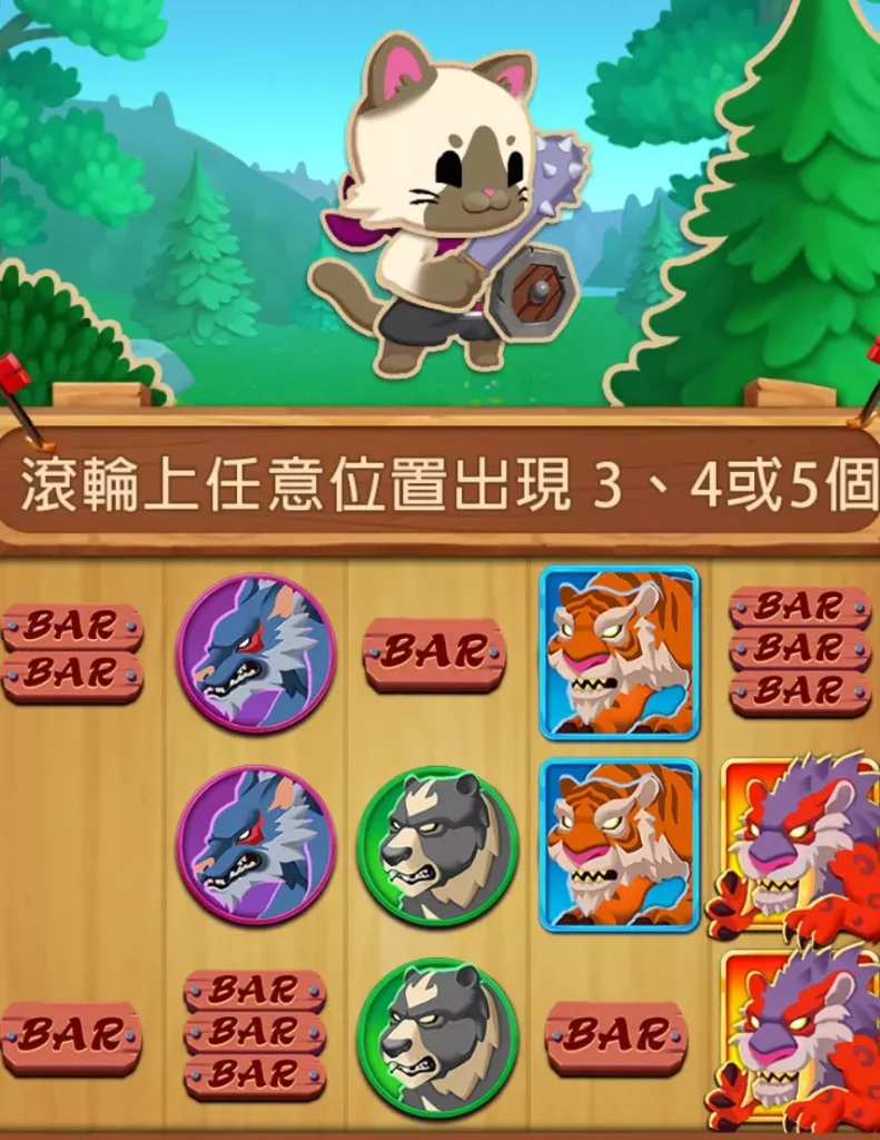 BE電子《怪獸獵人》是一款融合貓咪與怪獸獵人元素的創新老虎機遊戲,將可愛的貓咪化身為英勇的怪獸獵人,陪伴玩家進行狩獵冒險。在遊戲中,玩家只需要透過轉動遊戲輪軸,讓遊戲圖示成功連線,就能獲得相對應的獎勵。