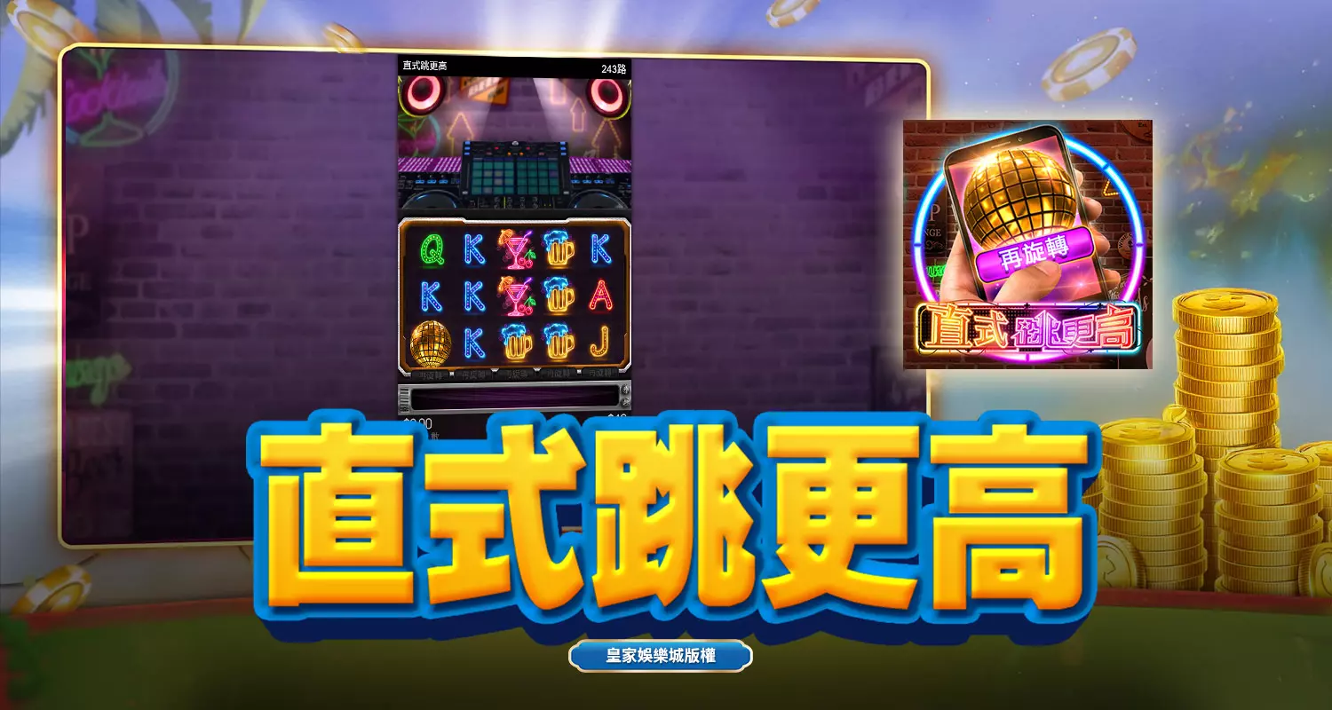 富88娛樂城《直式跳更高》是高娛樂性、高賠付的老虎機遊戲,不僅擁有243路賠付與高返還率(96.98%),還具備獨特再旋轉功能與免費遊戲高倍數獎勵,讓玩家能夠透過靈活的策略提升中獎機率。
