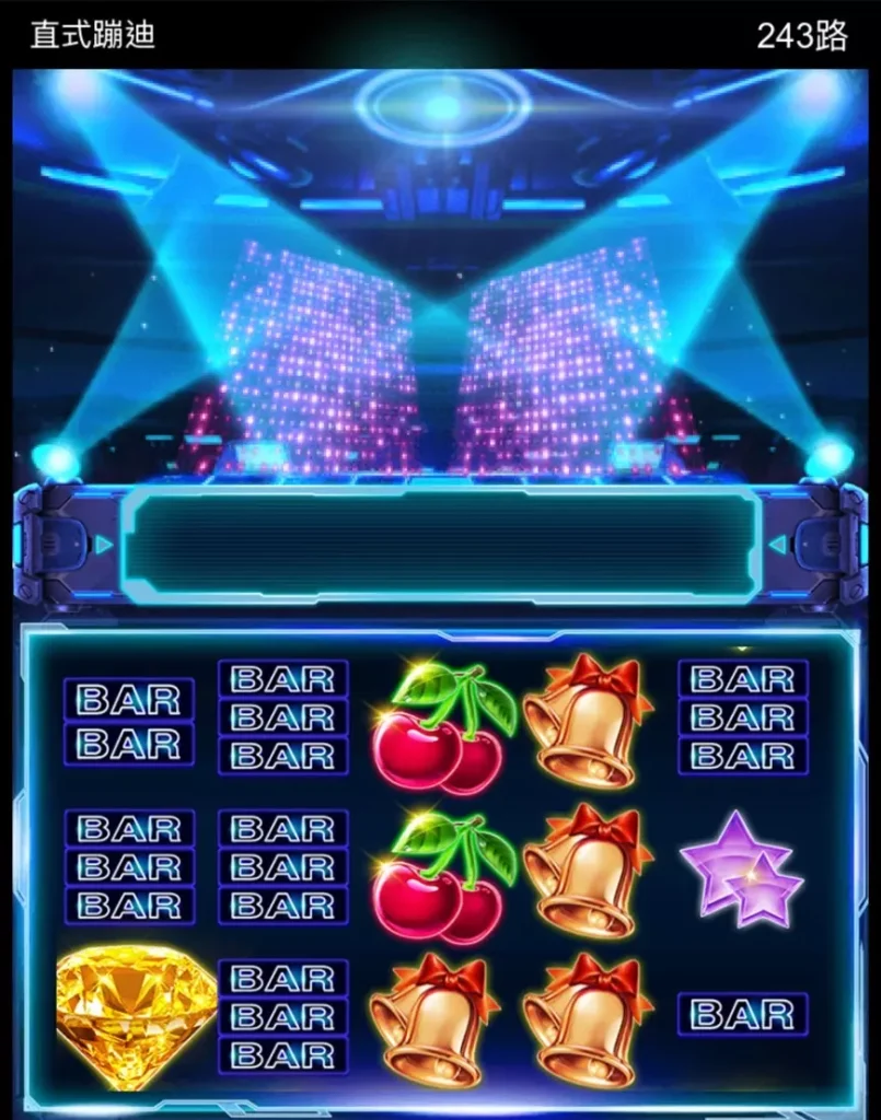 相較於傳統橫向的老虎機,這種直式遊戲模式讓畫面更清晰,更容易看清滾輪上的符號與獎勵機制。在這款遊戲中,玩家將沉浸在充滿動感的音樂與霓虹燈光交織的視覺效果中,彷彿身處熱力四射的蹦迪派對。