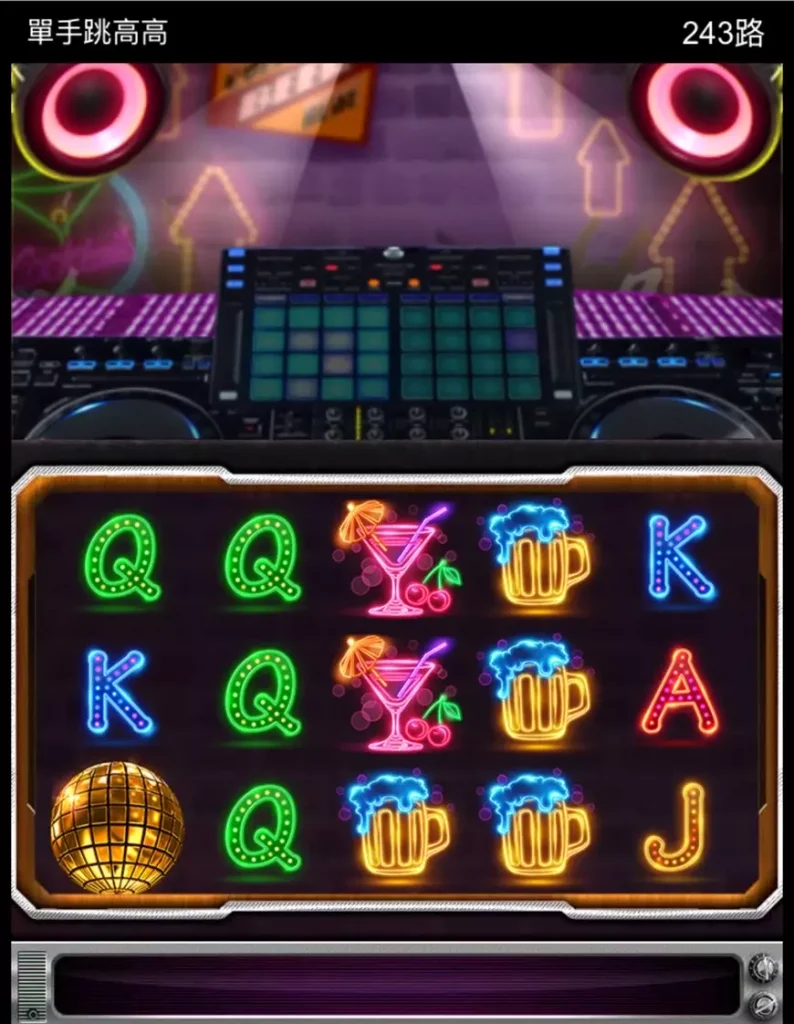 BE電子單手跳高高是一款極具娛樂性與獎勵機制的直式老虎機,擁有動感十足的夜店風格設計,為玩家帶來極致的視覺與音效體驗。這款遊戲採用243路賠付,提供多種連線方式,讓玩家擁有更高的獲勝機率。