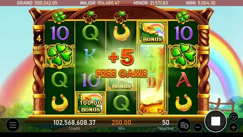 金色幸運草》採用標準的4×5轉軸設計,搭配50條固定賠付線,操作簡單直覺,只需設定好投注額,點擊旋轉鍵,即可展開這場幸運之旅。無論你是老虎機新手還是資深玩家,都能輕鬆上手。