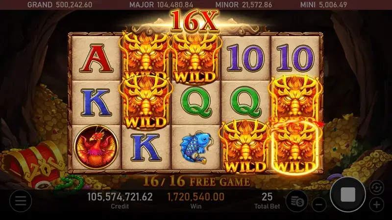 在免費遊戲期間,遊戲內部設有倍數累積機制。每一次免費旋轉結束後,當局的贏分倍數會自動提升,從1倍開始逐步增加,最高可提升至16倍。這樣的設計讓玩家在免費遊戲期間的每一次旋轉都充滿財富爆發的可能性。