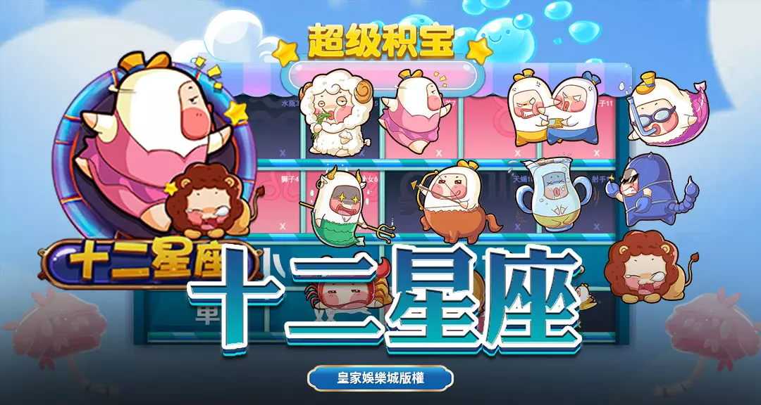 《十二星座》是由知名品牌FG電子所開發的一款視覺與玩法並重的電子遊戲。遊戲以經典十二星座為主題,從白羊座到雙魚座,每一個星座都有獨立的設計與動畫效果,不僅充分展現各自性格特徵,也為玩家打造出充滿魔幻色彩的遊戲空間。每個星座皆擁有專屬的小島與代表性的小動物,配合不同的符號圖案與賠率機制,讓玩家在下注同時也能欣賞各星座的專屬魅力。