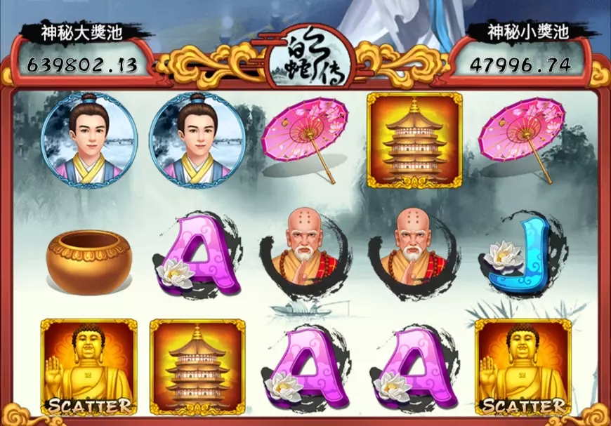 常見高賠符號,白娘子(最高賠付)、許仙、小青(中高賠)、寶瓶、法器、蓮花等(中低賠),遊戲界面清晰直觀,無論是新手還是資深玩家,都能快速掌握操作方式,輕鬆上手進行遊戲。