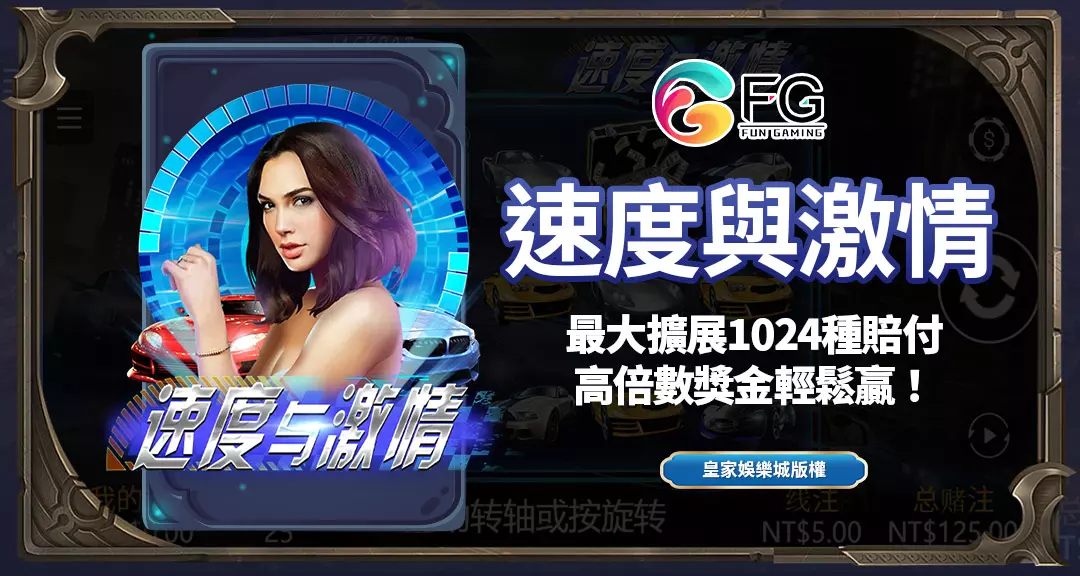 當賽車疾馳的轟鳴聲與繽紛華麗的燈光交錯閃爍,當電影級劇情結合博弈娛樂火花四射,你就知道,這不僅是一款遊戲,而是一場極速冒險的開端。由FG電子所推出的《速度與激情》老虎機遊戲,完美承襲同名電影系列的精神與場景設計,將激情、速度、團隊合作與冒險精神注入每一次旋轉之中,讓玩家猶如置身賽車跑道般,每一局都熱血沸騰、充滿挑戰。