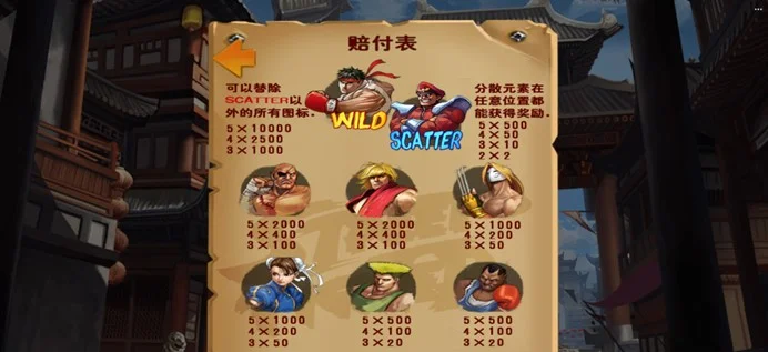 在《街頭霸王》中,百搭符號扮演著重要的角色,它可以代替除了分散符號以外的任何其他常規的格鬥角色符號,以幫助玩家形成最佳的贏獎組合,從而增加獲勝的機會。