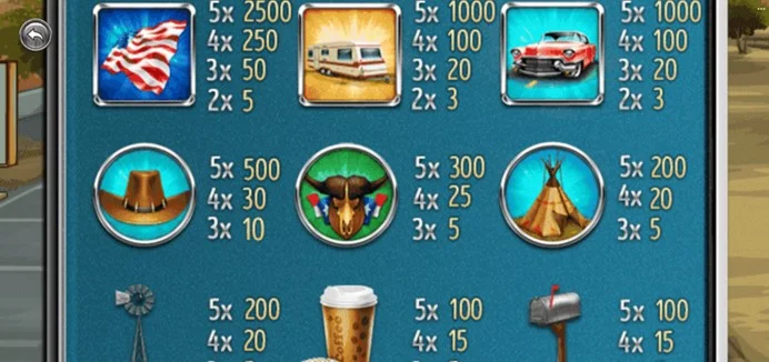 一進入〈66路〉的遊戲介面,你就會被濃濃的50年代美式風格包圍。遊戲背景設定在夕陽餘暉下的美國公路上,黃沙飛揚、油門催到底的感覺彷彿就在眼前。滾輪上出現的符號圖案也都是充滿公路元素的經典設計,例如美國國旗、復古咖啡杯、皮卡車、經典機車、66號路牌、還有那種只在老電影裡才會看到的古董車,每個符號都彷彿在訴說著一段美國舊時代的故事。