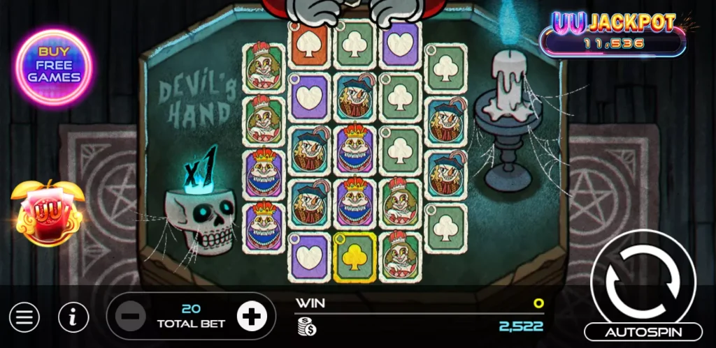惡魔卡牌》採用3×5轉軸佈局與20條固定賠付線,對新手而言非常友好,不需煩惱如何設定線數,所有賠付線皆自動啟用。這種設計保證了玩家在每次旋轉時都能享有最大中獎機率,同時保留了經典老虎機的操作手感。