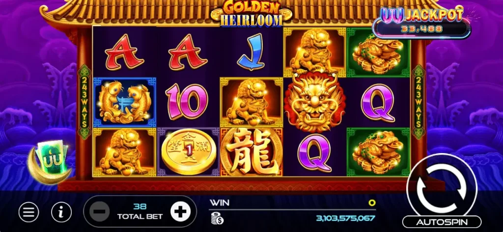 「傳家金寶」獨特的243路賠付,傳統的老虎機依賴於預設的賠付線來計算中獎組合,而243路賠付則完全打破了這個限制,增加了玩家的中獎機會和中獎頻率,使得遊戲過程更加刺激和充滿活力。