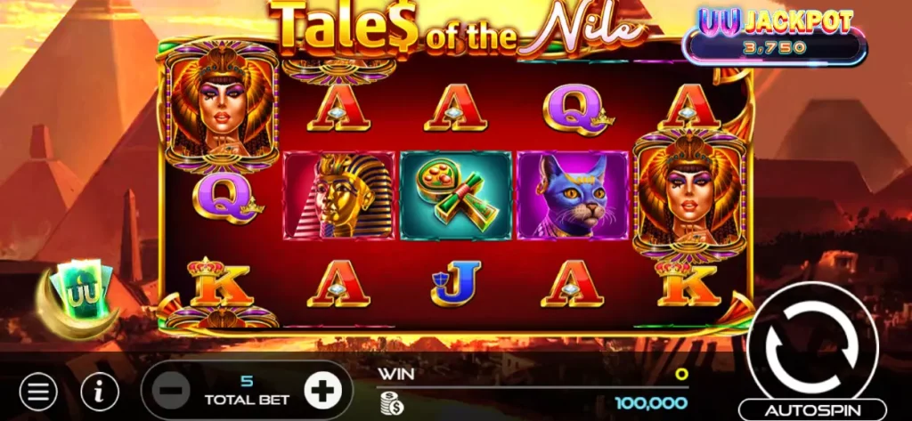 UU電子旗下的《尼羅民謠》是一款充滿古埃及神秘色彩的5×3轉軸老虎機遊戲。它將玩家帶入尼羅河畔的古老帝國,在金字塔、法老和眾神的庇佑下,尋找隱藏的巨大寶藏。