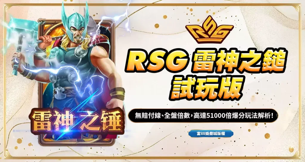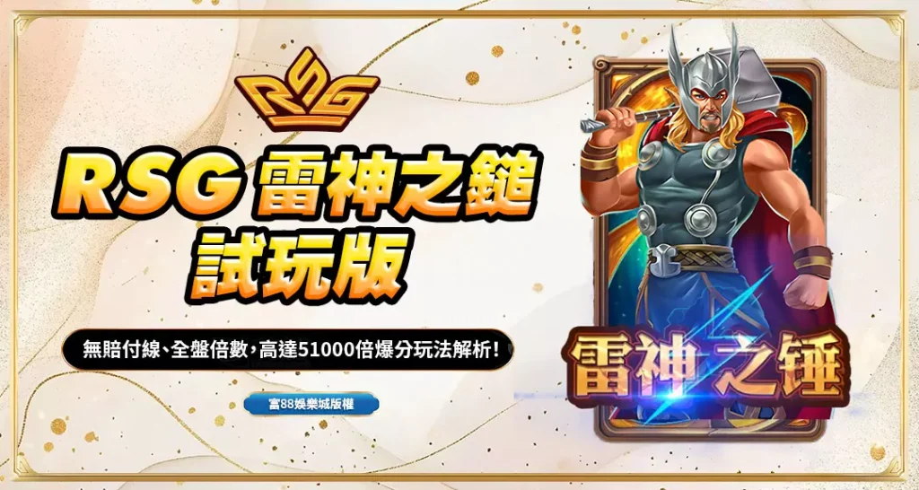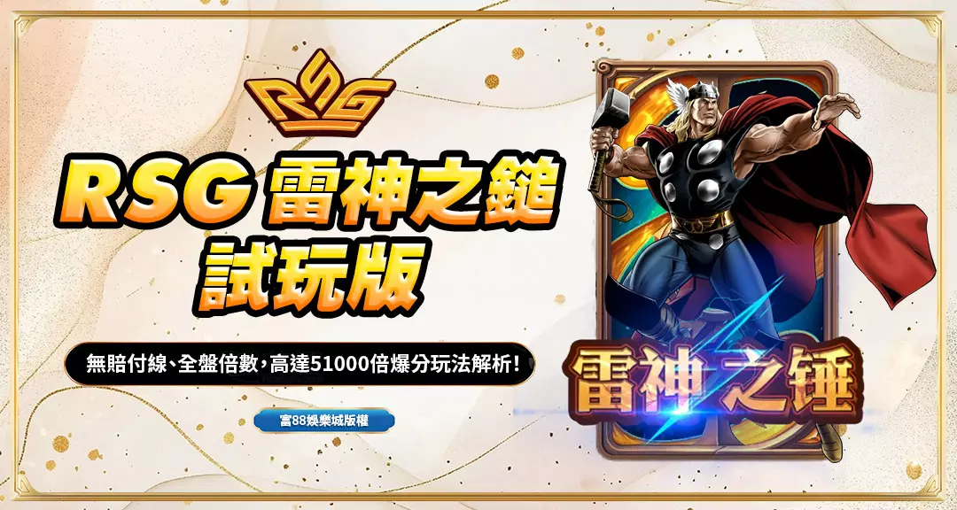 別把試玩當小事,越認真對待這個免費練功階段,你未來在實戰時就越不會當冤大頭。現在就領取富88娛樂城的體驗金,進入RSG的《雷神之鎚》,一邊享受北歐戰神的視覺震撼,一邊培養自己成為真正能掌握節奏的老虎機玩家吧!
