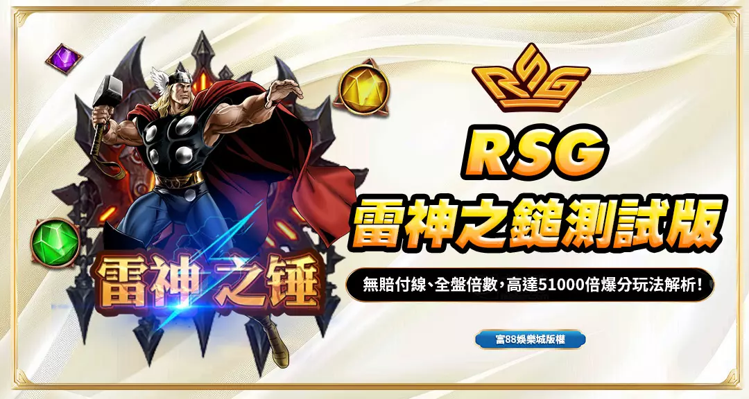 RSG雷神之鎚測試版是由RSG電子官方推出的體驗模式,玩家只需前往官方網站或合作娛樂平台(如富88娛樂城等),即可進入測試頁面。無須儲值、不需註冊信用卡,點開遊戲介面即可直接遊玩,保留與正式版相同的轉輪、符號與消除節奏,真正做到「無壓力試玩」。