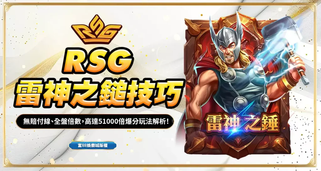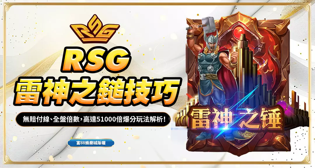 今天這篇,就來跟你分享實戰多次驗證有效的「RSG雷神之鎚加碼法」,這套方法非常適合富88娛樂城新手,也適合已經對這款遊戲稍微有點了解、想要穩定拉大獎的玩家。