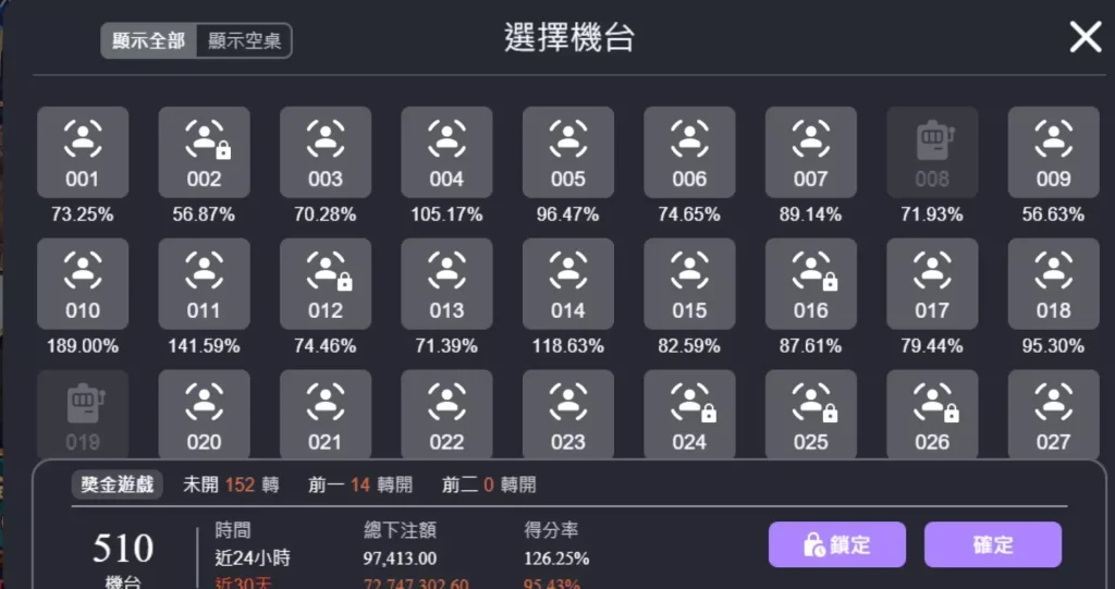 優先選擇返還率較高的機台來進行試玩,是一個非常明智的策略。有些機台的得分率甚至超過了100%,根據小編的實測,選擇這些得分率較高的機台,中獎的機率確實能夠大幅提升。這個小技巧希望大家能夠參考一下。