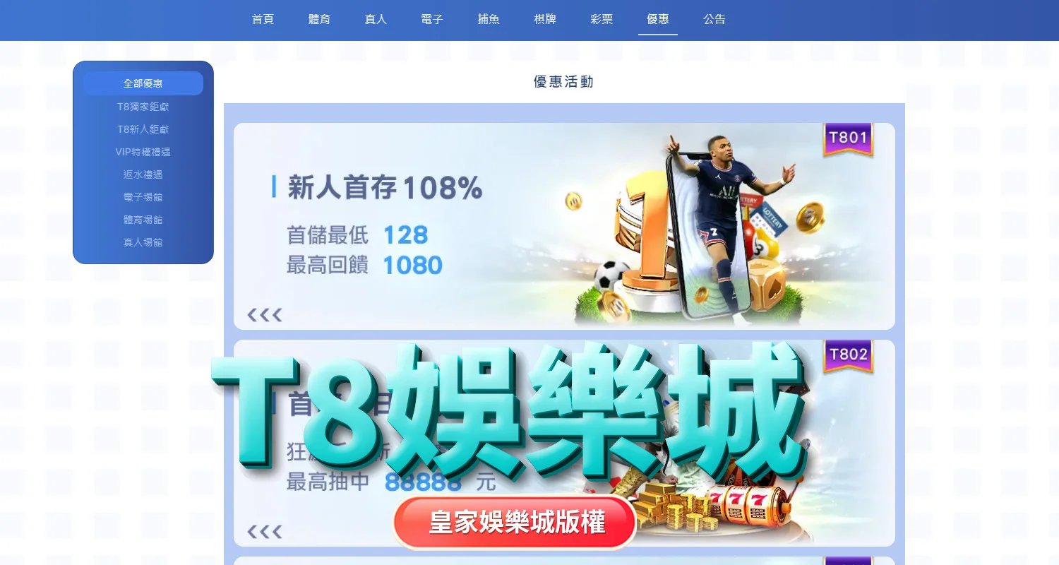 首先,我們來看看優惠活動的部分。T8娛樂城作為一個新興的娛樂城,優惠活動上還是很有吸引力的。T8娛樂城提供了多種優惠活動,包括首次儲值好禮、返水回饋以及針對舊會員的會員榮耀日VIP活動等。比如說,在首次儲值的優惠方面,T8娛樂城只要完成首次儲值,就可以獲得相應的彩金。這一點上看,T8娛樂城的活動確實吸引了不少新玩家的關注。