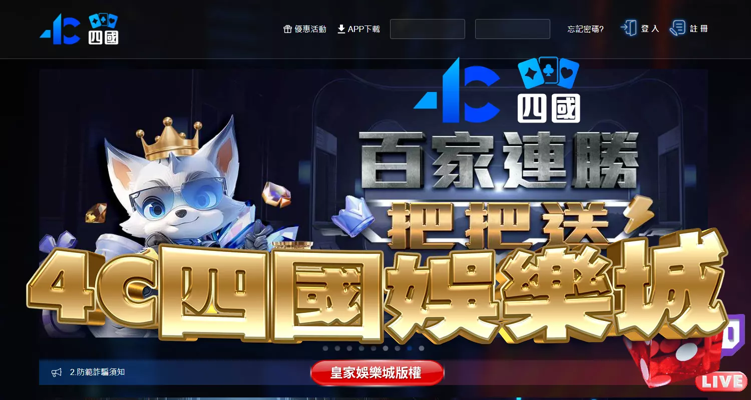 4C四國娛樂城官網的互動性設計也是其一大亮點。網站使用了大量的動態效果,當玩家在頁面上瀏覽或進行操作時,無論是滑動、點擊還是選擇遊戲,界面上的動畫效果都會給人帶來一種真實的互動感。這種動態效果不僅讓網站顯得更加生動,也讓玩家在瀏覽網站時感受到更多的參與感和樂趣。
