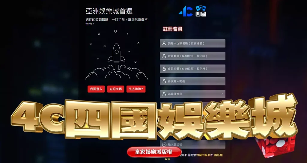4C四國娛樂城是一家知名的線上娛樂平台,為玩家提供多樣化的遊戲選擇和豐富的獎勵活動。無論是電子遊戲、真人遊戲還是體育博彩,該平台都能滿足不同玩家的需求。要體驗這些精彩的遊戲和服務,首先需要在4C四國娛樂城註冊一個帳號。以下是詳細的註冊過程,讓你可以輕鬆成為4C四國娛樂城的會員,享受平台提供的各項娛樂服務。