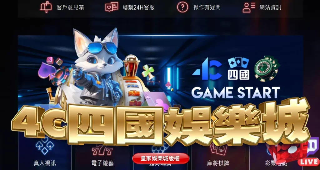 4C四國娛樂城作為台灣線上娛樂城市場中的一個重要品牌,已經以其多樣化的遊戲選擇和創新功能在眾多玩家中贏得了口碑。該平台特別主打電子類遊戲,並且通過與TWITCH直播平台合作,為玩家提供了直接連結到電競賽事直播或體育賽事直播的服務,這使得玩家能夠在進行遊戲投注的同時,享受實時的賽事觀看體驗。這種結合電子遊戲與直播技術的創新模式,大大提升了4C四國娛樂城在市場中的競爭力和吸引力。
