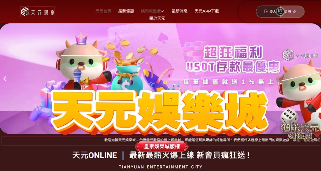 天元娛樂城在這6間娛樂城中,是小編認為相對值得考慮的選擇之一。原因有幾點,首先,它的官方網站設計比較精美,整體介面簡潔,操作也很直觀,對於新手玩家來說,相對容易上手。
