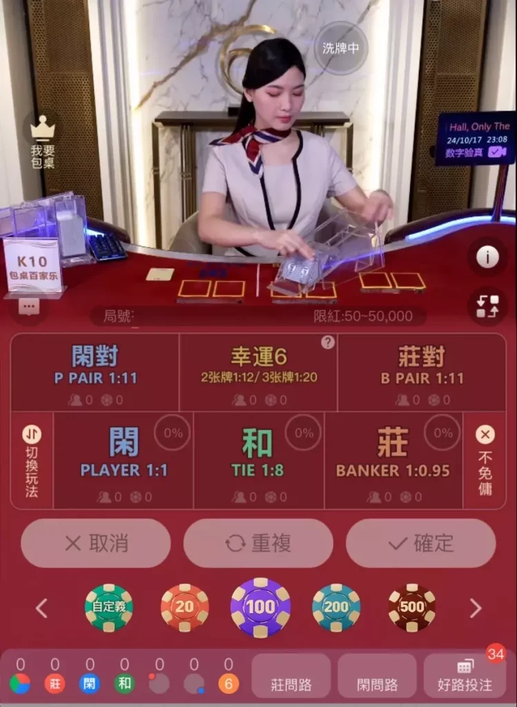 玩家可以透過高清的直播技術,與來自台灣和中國的美女荷官互動,不僅可以玩百家樂等經典遊戲,還能邊與荷官聊天,增添了許多娛樂性與趣味性。這樣的設計讓玩家在享受賭博刺激的同時,也能感受到如同與朋友一起遊玩的輕鬆氛圍。