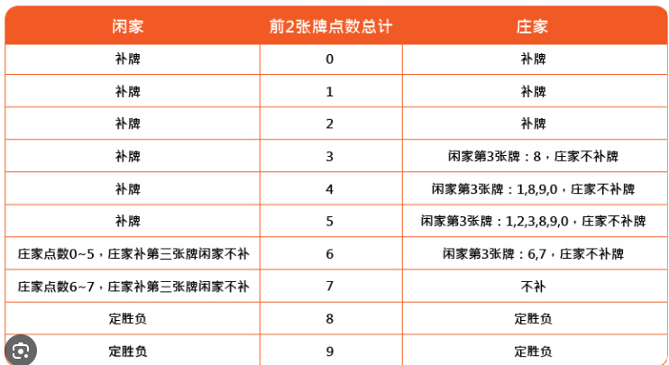 一般來說,閒家的補牌規則比較簡單,當閒家手中的牌點數總和低於6時,就會自動補牌。而莊家的補牌規則則相對複雜,因為莊家的補牌需要根據閒家的第三張牌來決定。例如,當閒家補出的第三張牌點數是特定數字時,莊家才會補牌,否則莊家不會補牌。