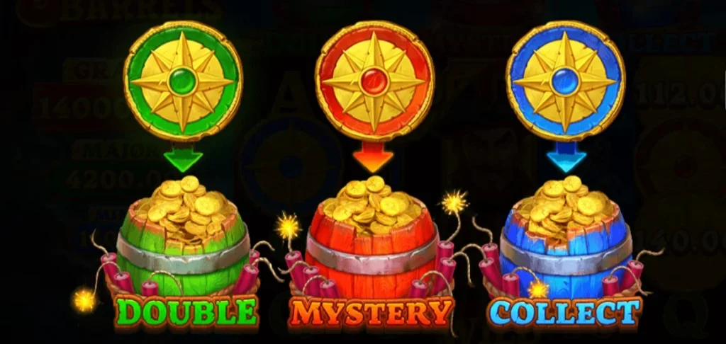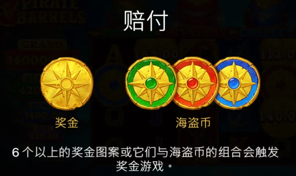 在獎金遊戲中,每次新增的海盜幣會隨機轉換為綠色、紅色或藍色的特殊幣,對應於不同的木桶功能。小編認為這些木桶功能不僅能夠進一步提升你的獎金,還可能強化已有的效果,讓你在遊戲中獲得更多額外的回報。