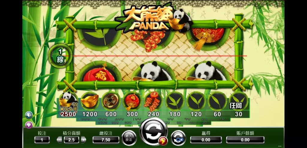 AMEBA電子大熊貓是一款以可愛的大熊貓為主題的趣味老虎機遊戲,整體風格充滿中國風元素,讓玩家在遊戲中感受到濃厚的東方文化氛圍。以大熊貓寶寶為核心角色,搭配多樣化的遊戲圖案與細節設計,這款遊戲成功結合了娛樂性與視覺享受,成為廣受玩家喜愛的經典之作。