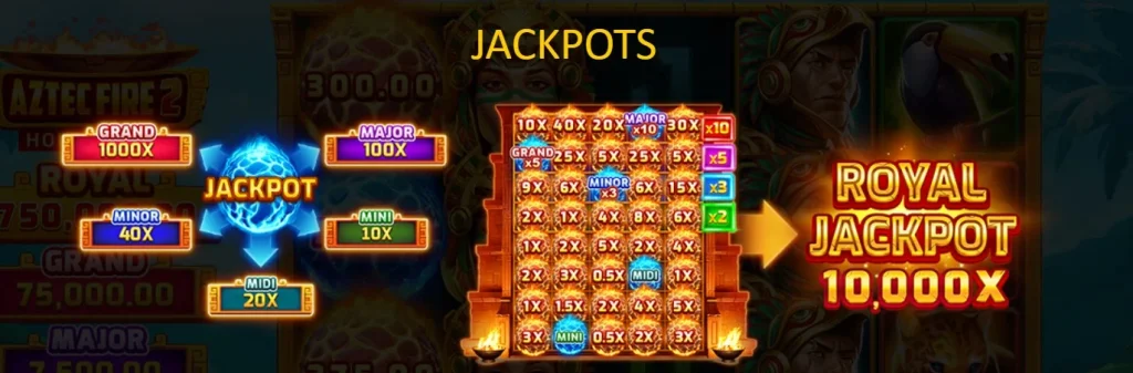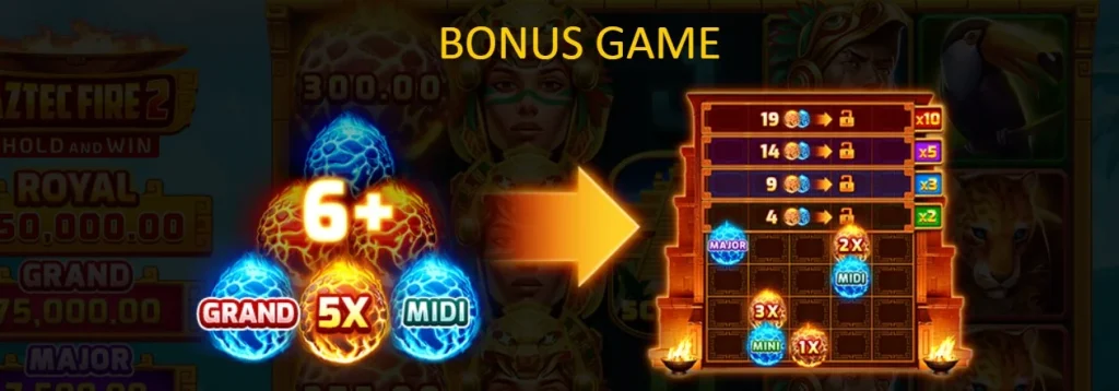 烈焰阿茲特克2的核心亮點是獨特的Bonus。只要在主遊戲中收集到6個或以上的Bonus符號,就能觸發這個充滿期待的獎金遊戲。在Bonus中,所有的Bonus符號都會固定在卷軸上,而玩家一開始會擁有3次重新旋轉的機會。只要在每次旋轉中新增Bonus符號,重新旋轉的次數就會重置為3次,為你提供更多累積獎金的機會。