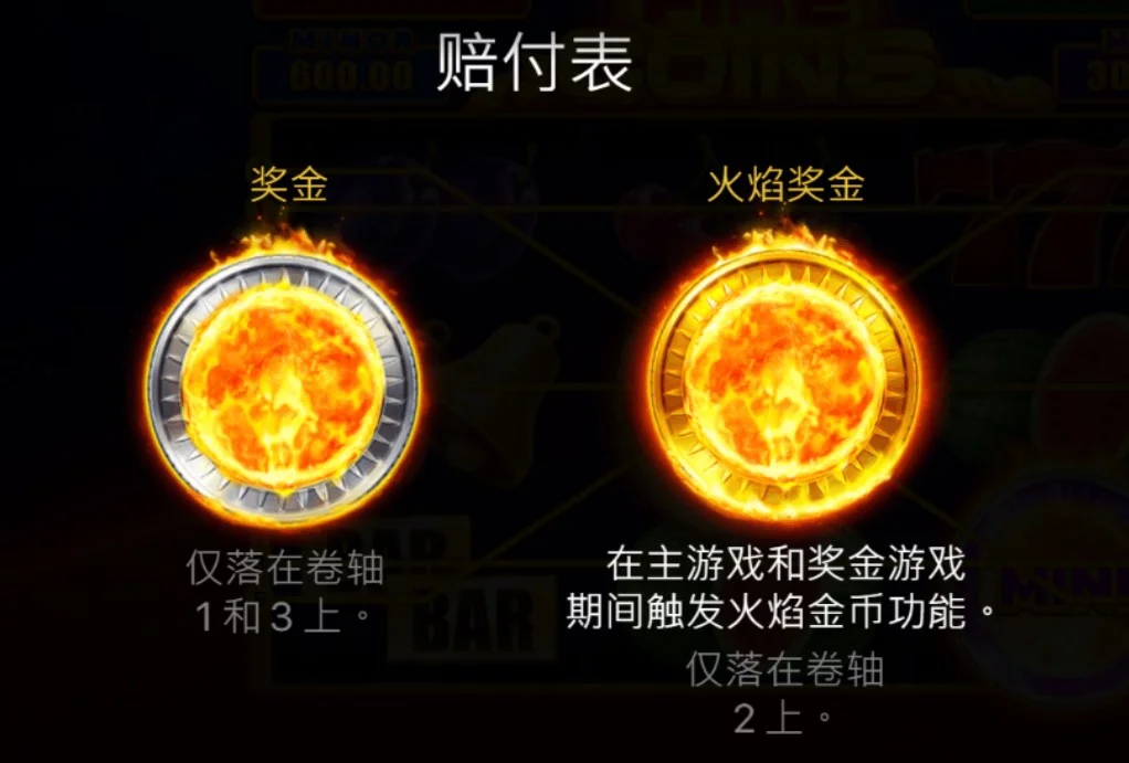 火焰金幣功能是遊戲的核心亮點之一。當火焰獎金圖案與其他任意獎金圖案組合時,即可觸發該功能,並收集卷軸上所有獎金圖案的值。這些值包括迷你、小、大和最高頭獎的獎金,最終統一加到當前旋轉的總獎金中。這代表著每次火焰金幣功能的啟動,都可能帶來大幅度的收益。