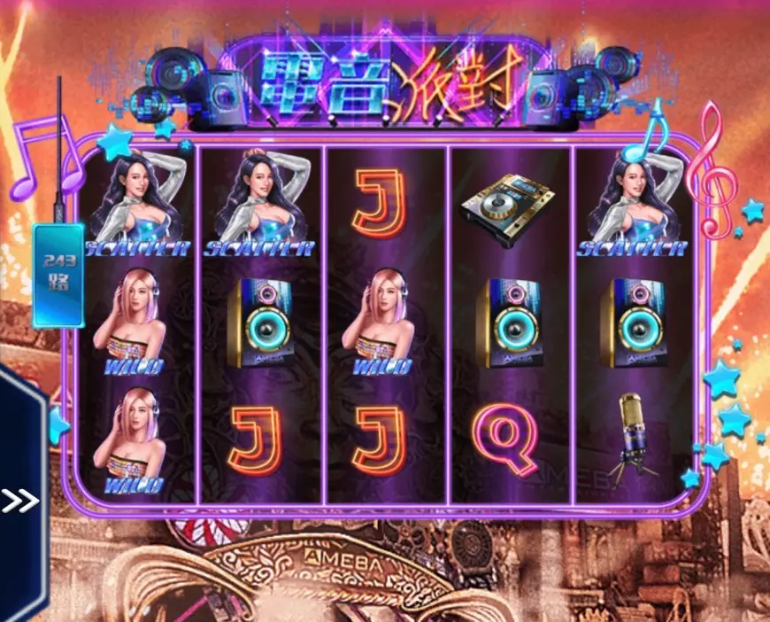 AMEBA電子電音派對採用了經典的3×5滾軸設計,搭配豐富的電音元素,如美女DJ、耳機、麥克風和音響等符號,每一次旋轉都彷彿是一次節奏的爆發。遊戲還設有15條賠付線,為玩家提供多種中獎可能,連成一條線即可獲得獎金。遊戲的畫面以炫目動感為特色,每次旋轉都充滿了視覺和聽覺的雙重享受,讓玩家在遊戲過程中保持愉悅的心情。