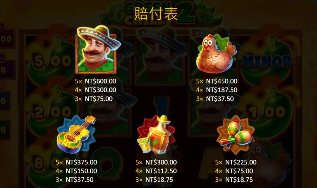 遊戲的設計風格以熱情洋溢的辣椒主題為核心,背景音樂則搭配了輕快的節奏,為整體遊戲增添了活力。卷軸上的符號設計獨具匠心,除了辣椒圖案,還有代表高價值的WILD符號和SCATTER符號,可以看出BNG電子在第二代想做在每一個細節上,都讓人感受到更多濃厚的遊戲氛圍。