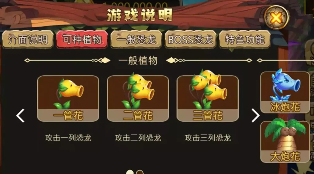 大炮花:只攻擊十二倍以上獎勵的恐龍,並且有機會擊退恐龍。