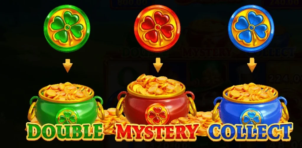 這款遊戲的亮點在於三大獎池功能,分別是雙倍功能、神秘功能和收集功能,對應於綠色、紅色和藍色四葉草幣。雙倍功能中,每當綠色四葉草幣出現,所有獎金圖案的價值都將翻倍,並有機會獲得高達150倍總賭注的額外獎勵。
