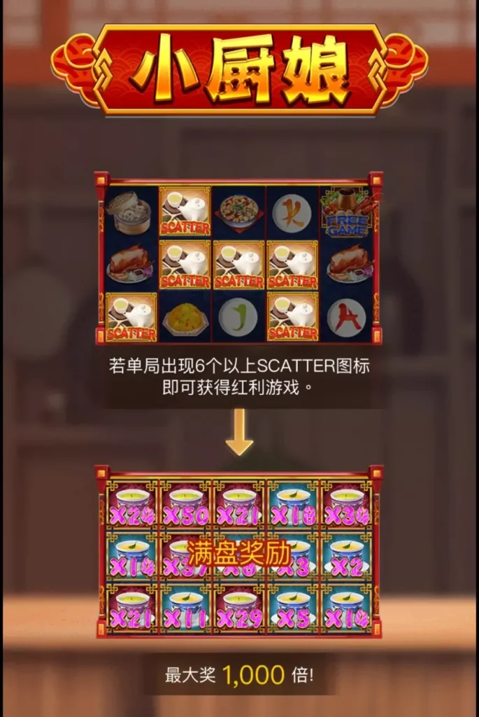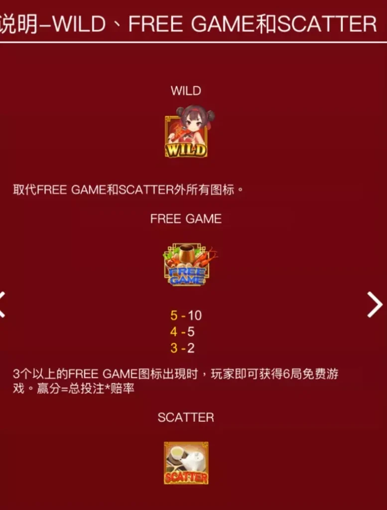 免費遊戲和紅利遊戲是《ZG電子小廚娘》的核心亮點。在免費遊戲模式中,第二、第三和第四卷軸會合併成一個大型圖案,並按照賠付表計算獎金。同時,免費遊戲和分散符號僅以大型圖案形式出現在盤面中,增加了遊戲的可視化效果和趣味性。
