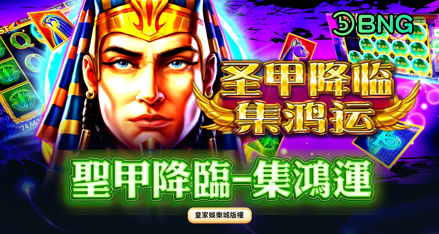 小編今天要為大家介紹的是BNG電子的重磅力作,那就是聖甲降臨集鴻運老虎機!這款遊戲將古埃及傳奇與豐富的遊戲機制結合,讓每一次旋轉都充滿未知的驚喜與刺激。現在就跟著小編一起深入了解這款必玩的老虎機,揭開贏錢的秘密吧!