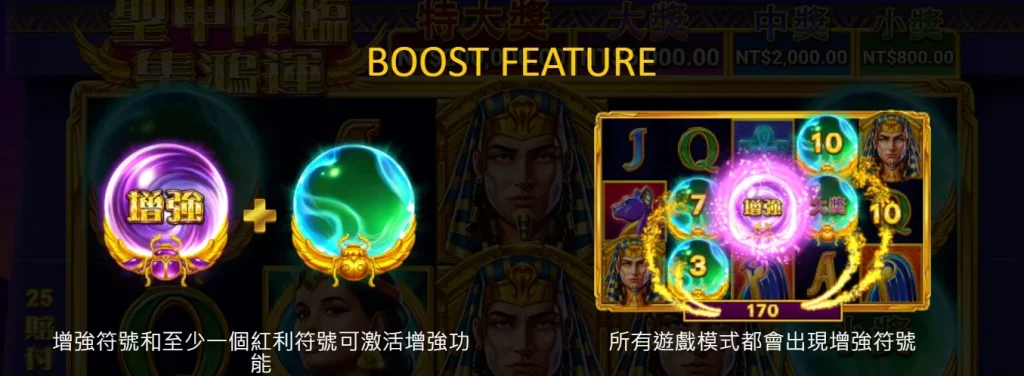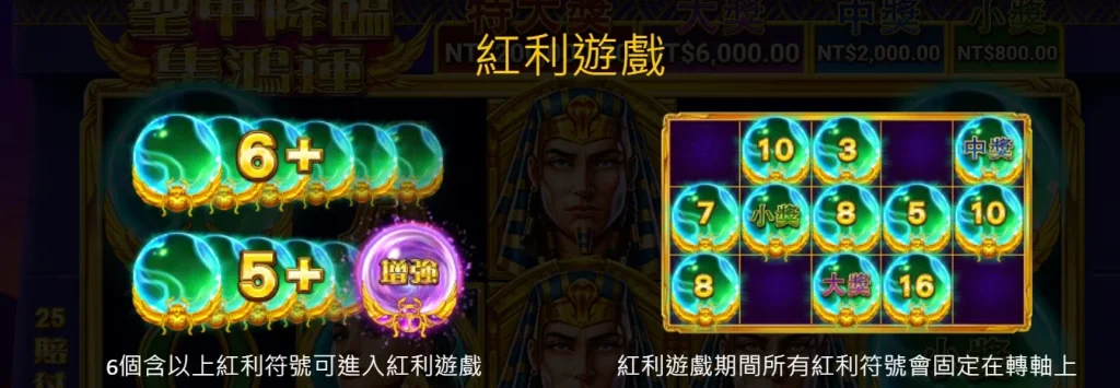 紅利符號則僅在紅利遊戲中出現,當觸發紅利遊戲時,系統將自動計算獎金,帶來爆發性的財富回饋。