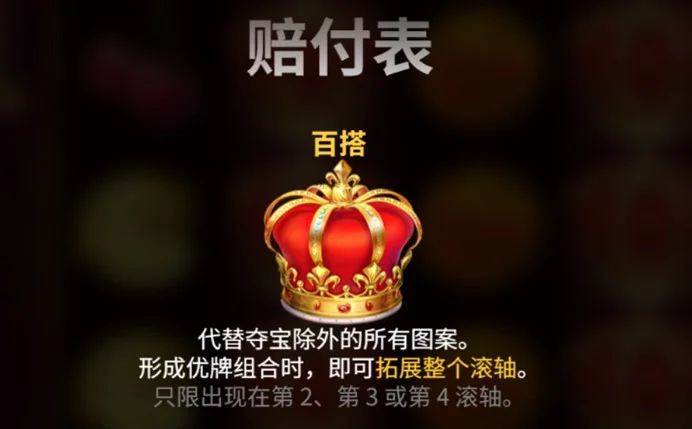特別要注意的是皇冠符號,當它出現在第2、第3或第4滾軸時,還會啟動擴展功能,覆蓋整個滾軸,大幅增加中獎機會。若有幸轉出完整的皇冠組合,就能迎來高額獎金,是許多玩家最期待的時刻!