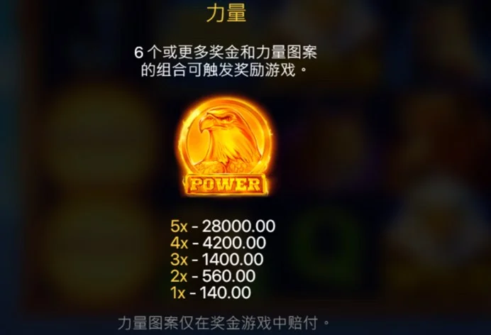 天空霸主集鴻運的百搭功能相當強大,可以替代除獎金和力量圖案外的所有符號,幫助玩家組合更多的賠付線。遊戲還設有免費旋轉和獎金遊戲,玩家只要集滿6個或更多獎金與力量圖案,就能進入獎金模式,賭注越高,中獎機率越大,特別適合敢於挑戰的資深玩家。