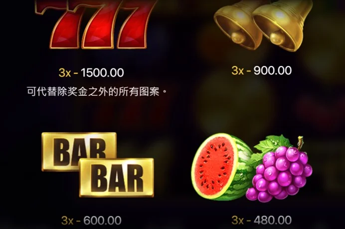 錢滾滾水果盤的賠付規則非常簡單,當相同圖案在賠付線上連線時即可獲得獎勵。最低下注額為6,最高下注額為2000,滿足不同玩家的需求。