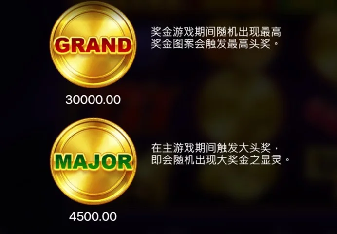 遊戲背景色調選擇了深紫色,搭配金色裝飾,增添了高貴與神秘的氛圍。賠付線的設計簡單直觀,無論是新手還是資深玩家,都能輕鬆上手。遊戲中還設置了GRAND、MAJOR和MINI三種獎金等級,任何一局都有機會贏得豐厚獎金!