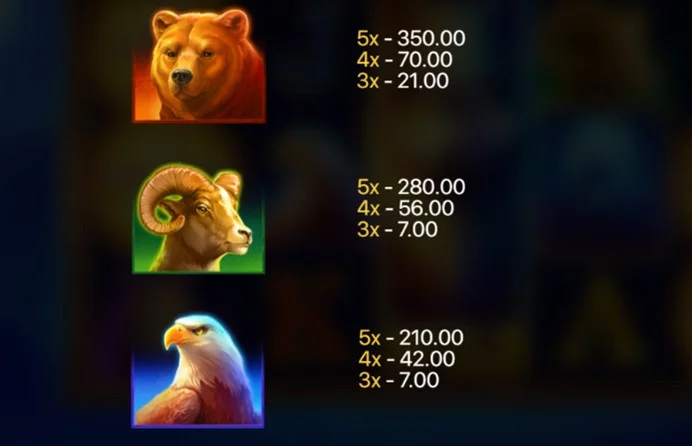 遊戲中的主要符號包括狼、山羊、鷹與貓頭鷹,每個符號都擁有不同價值,搭配金色光芒的火球和象徵力量的獎金符號,讓遊戲更添神秘色彩。