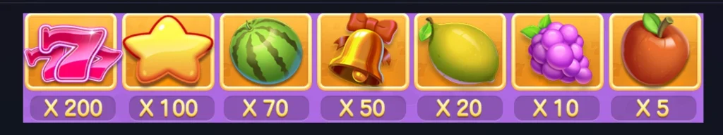 遊戲中的符號以水果為主題,充滿復古風情,簡單明瞭的圖形設計讓遊戲更具趣味性。玩家只需輕鬆旋轉,即可感受到經典水果機的純粹樂趣。